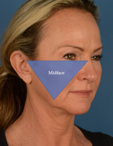 The midface refers to the cheek area beneath the eyes, extending down to just above the upper lip and along the nasolabial folds. An Endoscopic Midface Lift specifically targets this region without needing to lift the entire facial skin.